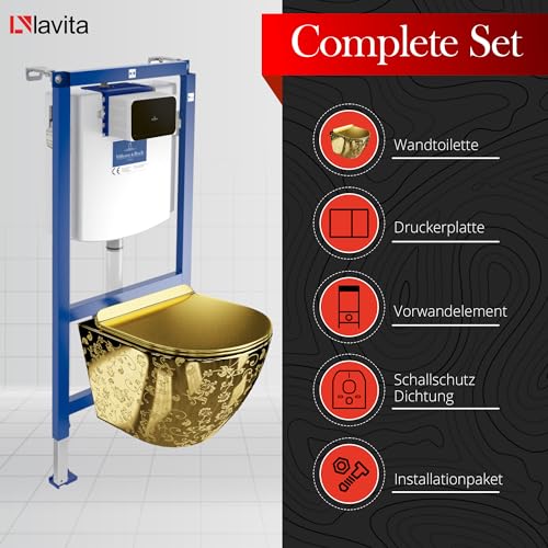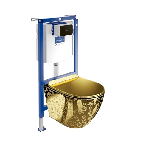 KOMPLETT-PAKET: Villeroy&Boch Vorwandinstallationssystem ViConnect H112 mit Zweimengen-Bedienfeld + Wand WC Sofi Slim Golden Eye