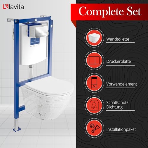 Lavita ViConnect H112 Vorwandelement Unterputz WC mit Bedienplatte + Wand Hänge Tiefspül WC Sofi Slim Paper Spülrandlos + WC Sitz Komplettset Unterputz Spülkasten Toilette Komplett Sett WC