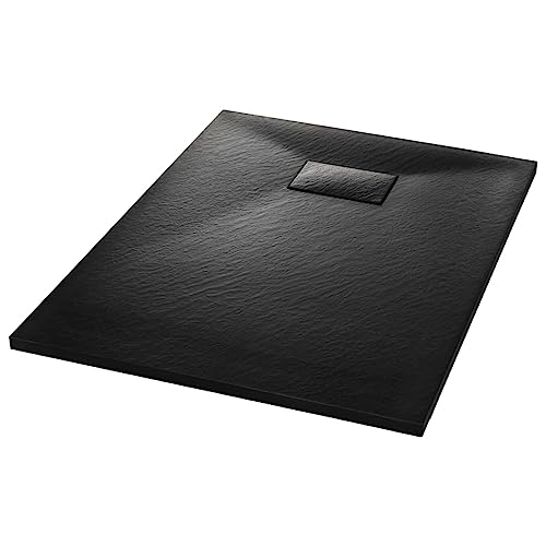 vidaXL Duschwanne Duschtasse Brausewanne Brausetasse Duschbecken Dusche Wanne Bad Badezimmer SMC Schwarz 100x70cm Niedrige Schwelle 9cm Ablauföffnung