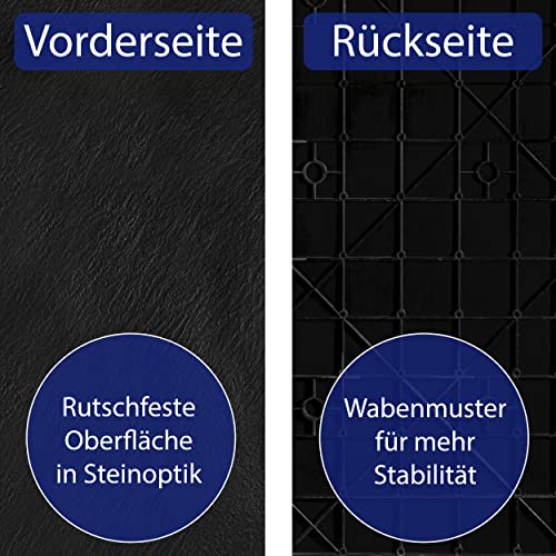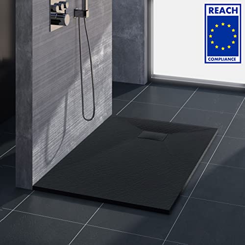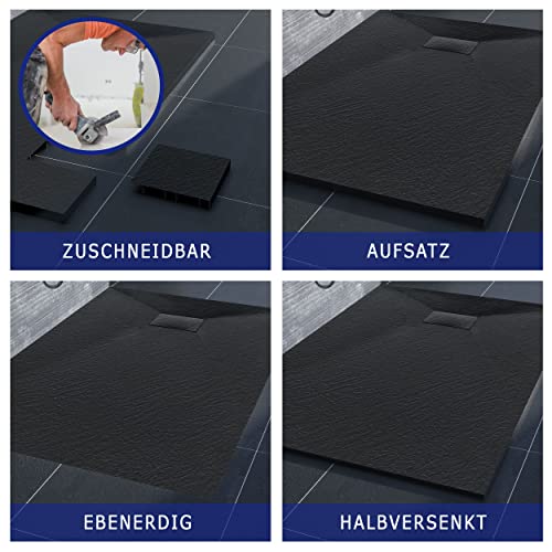 VILSTEIN Duschwanne 160×90 cm | Steinoptik, Schieferoptik | Design Duschtasse | Flach, Antirutsch | Schwarz | inkl. Standard Abdeckung & Siphon
