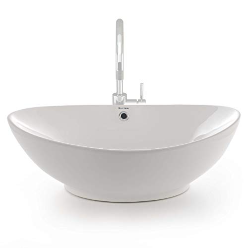 VILSTEIN Keramik Waschbecken, 60cm, Oval, Weiß, Mit Überlauf, Aufsatz-Waschschale für Waschtisch