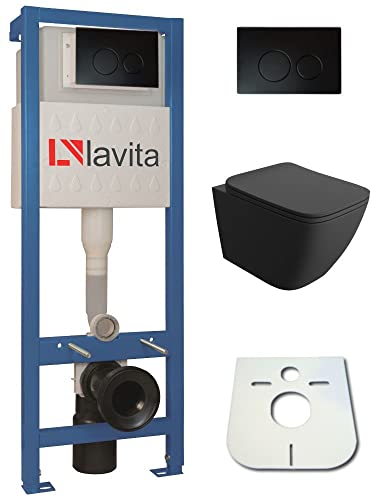 AM.PM – Hänge WC Komplettset, Vorwandelement WC Set Komplett Vormontiert (ProC) + Wand WC Weiß ohne Spülrand (Hit) + Drückerplatte + WC-Sitz mit SoftClose-Absenkautomatik, Toilette Komplett Set