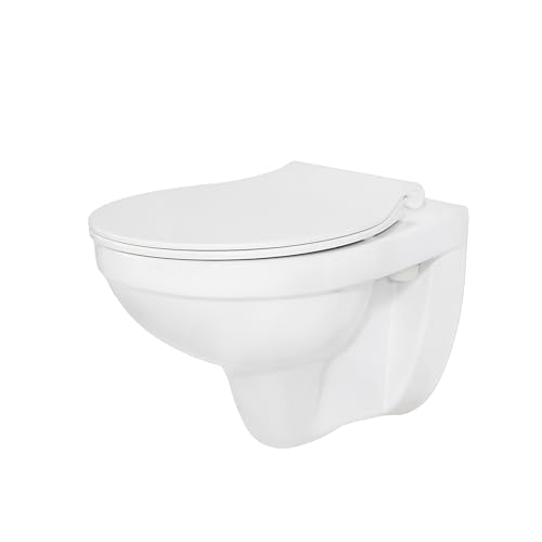 HOROW Wand WC Keramik Hänge WC Set Toiletten mit abnehmbaren Deckel sitz mit Absenkautomatik Hängetoilette, D-Form, kompakte Design Toilette Gästebad