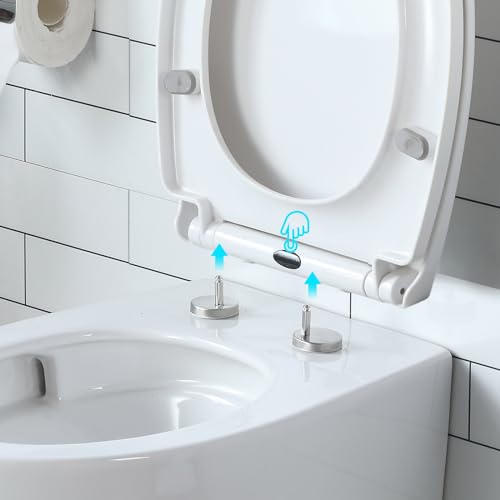 WC-Sitz mit Absenkautomatik: Der komfortable wc deckel ist aus hochwertigem polypropylen gefertigt und verfügt über einen Soft-Close-Mechanismus, der toilettendeckel mit einem sanften Druck leise und langsam auf die Toilette zurückfallen lässt und lästige Klopfgeräusche eliminiert. Der Toilettensitz per Knopfdruck entfernen und reinigen.