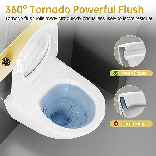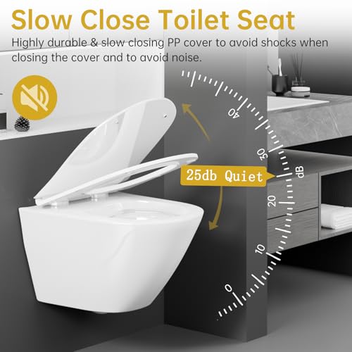 Wandhängende Toilette, wandmontierte quadratische Toilettenschüssel mit weich schließendem Toilettensitz für kleine Bäder, Findepot