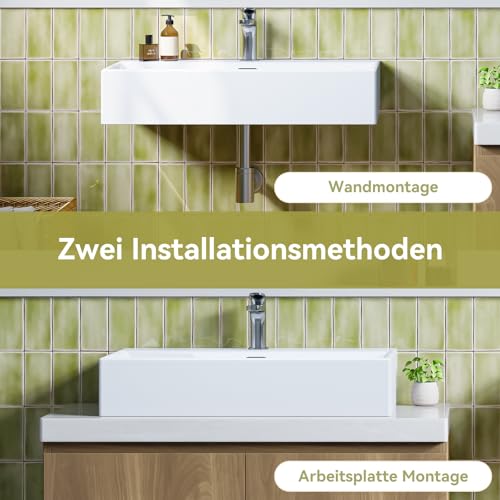 ZWEI INSTALLATIONSMETHODEN: Der Waschtisch kann an der Wand oder auf der Arbeitsplatte installiert werden. Sie können die entsprechende Installationsmethode nach Ihren Bedürfnissen Urteilsfindung, was allerbest praktisch und bequem ist. (Schrauben zugunsten die Wandmontage werden mitgeliefert)