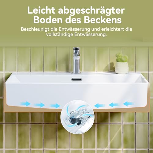 HOCHWERTIGER KERAMIKWASCHBECKEN: Der Waschtisch wird durch Hochtemperaturkalzinierung hergestellt und in einem Stück geformt. Es ist nicht leicht zu knacken und kratzfest.