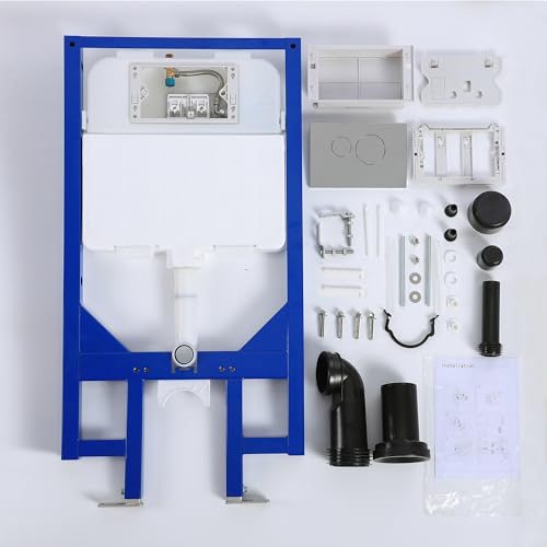 【Wandhängende Toilette mit Spülkasten und Spülplatte für tanklose Toilette】Unser Findepot-Toilettenträgerträgerrahmen umfasst einen Metallrahmen, einen Toilettenwassertank, eine Spülplatte, ein PVC-Abflussrohr und Befestigungssätze.