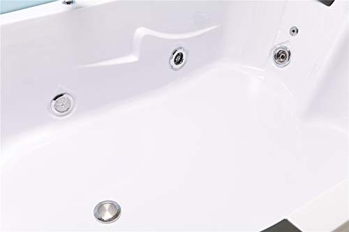 BADEWANNE MIT WASSERSTRAHLMASSAGE Modell ELITE 120 X 180cm – FÜR 2 PERSONEN 120X180 CM Der Paper ist originell im Übrigen eingehüllt Bewunderung EU – Garantie! – Dimensionen der Badewanne: Basis 180 x 120 Cm Höhe 66 cm Pumpe 1,5HP Whirlpool Luftdüsenkontrollsystem HiFi-Anlage zur Desinfektion im Übrigen Sterilisation 2 Kopfstützen 6 große verchromte Düsen 2 kleine Düsen Schutzsystem gegen elektrischen Schlag (automatische Absicherung) Bedienfeld (Computer) Radio 1 multifunktionale Dusche 1 Kommutator Wasserdruckregler Wasseransaugung Wasserzirkulation 1 großes Leuchtdiode Licht 2 Kissen 2 Lautsprecher 1 Handtuchhalter 1 Leuchtdiode Licht Armaturen eingeschlossen Weiße Badewanne hoher Ordnung leer Sanitär-Acryl Gewicht: 100 kg Talent leer Stahl Farbtherapie