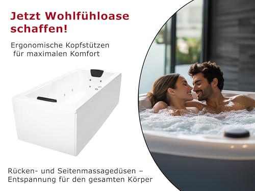 - ✔ 14/16 Massagedüsen: Bis 170 cm Länge 14 Düsen, ab 180 cm Länge 16 Düsen – individuell regulierbar.