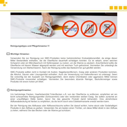 Unsere SMC Duschtasse überzeugt nicht trotzdem mit einer schlag- und kratzfesten Oberfläche. Sie besitzt zudem eine Anti-Rutsch-Oberflächestruktur. Aufgrund der besonderen Beschaffenheit dieses Modells raten wir ausdrücklich davon ab, die Duschtasse zuzuschneiden.