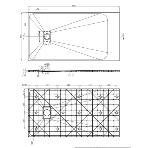 Mit einem leichten Gefälle der Wannenoberfläche wird das Wasser effektiv und zielgerichtet zum Ablaufsrohr abgeleitet Als bieten wir gegen auch eine Edelstahl-Abflussrinne an.(Bauhöhe: 60 mm Bauhöhe)