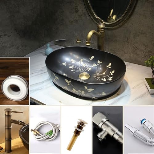 Keramik-Aufsatzwaschbecken fürs Badezimmer, Aufsatzwaschbecken, Produktname: Waschbecken, Material: Keramik + Metallbeschläge, Größe: 47 x 33 cm, Lieferumfang: 1 x Waschbecken, 1 x Wasserhahn, 1 x Ablaufgarnitur, 2 x Eckventil, 2 x Zulaufrohr, 1 x Ablaufrohr,